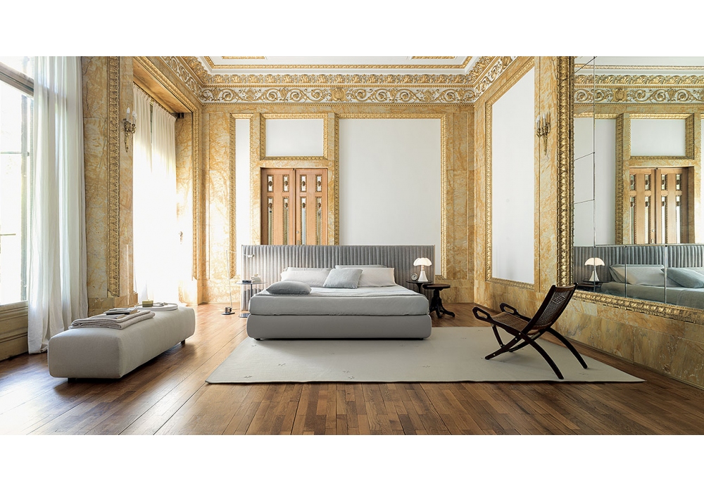 Silent Reps conçu par Francesco Rota pour Paola Lenti est un lit avec revêtement amovible et tête de lit réalisée avec des ceintures élastiques recouvertes de tricot Chain et rembourrées en polyester placées côte à côte. Disponible en différentes tailles. Sommier à lattes inclus.