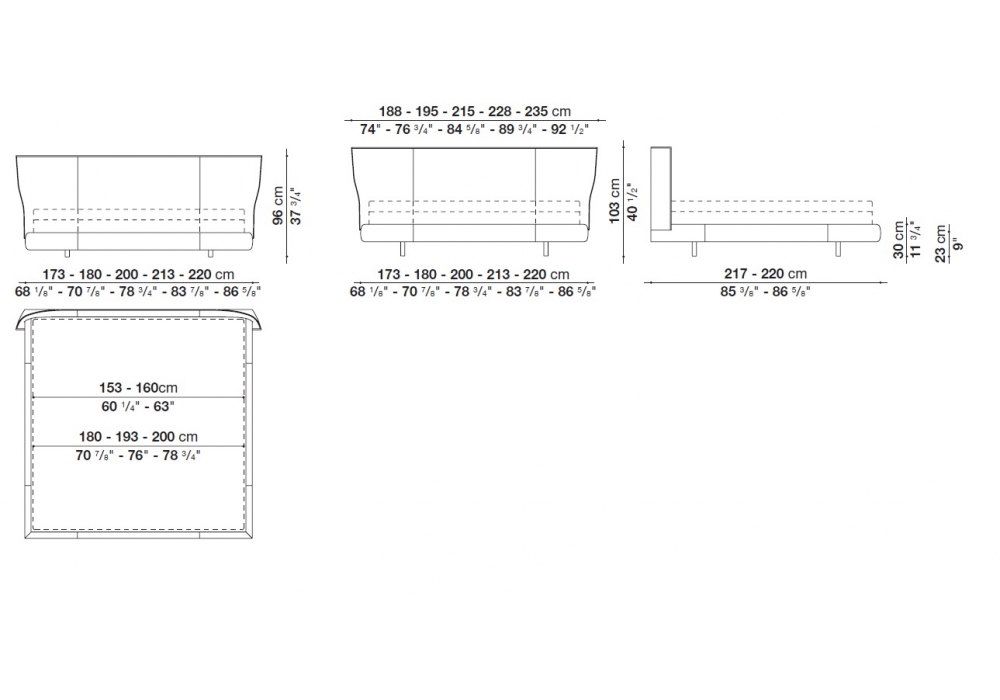 Alys 10 conçu par Gabriele & Oscar Buratti pour B&B Italias est un lit avec structure interne en tube d'acier et profilé avec rembourrage en mousse de polyuréthane Bayfit® et pieds en matériau thermoplastique. Revêtement en cuir ou en tissu dans différentes finitions.