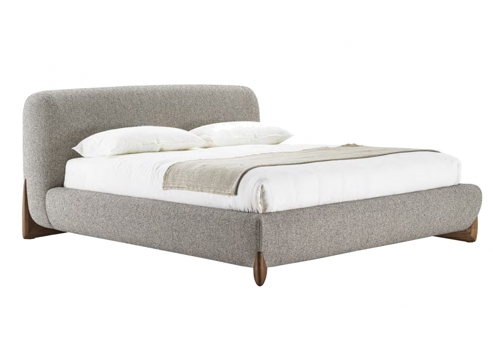 Softbay Max conçu par Giuseppe Viganò pour Porada est un lit avec quatre pieds en noyer canaletta massif et tête de lit et cadre de lit rembourrés en tissu. Structure interne en contreplaqué de bouleau et sapin massif avec rembourrage en mousse de polyuréthane multi-densité.