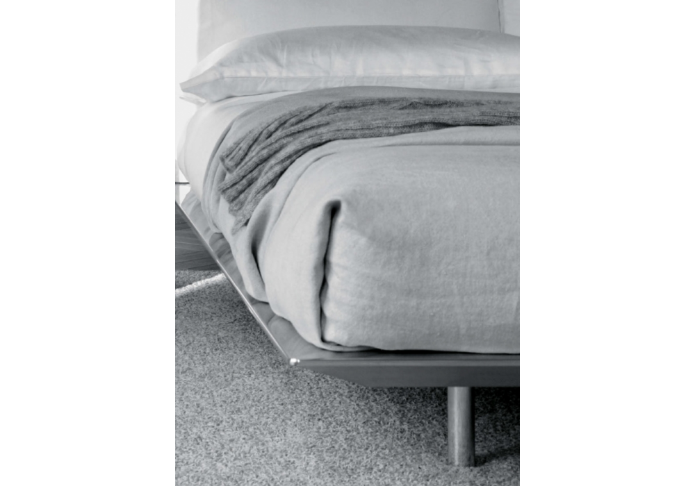 Platz conçu par R&S désirée pour Désirée est un lit avec structure en aluminium, contreplaqué et métal. Rembourrage de la tête de lit en polyuréthane écologique à densité différenciée et plumes recouvertes de toile de coton. Le revêtement est en tissu ou en cuir entièrement déhoussable. Pieds en aluminium poli.