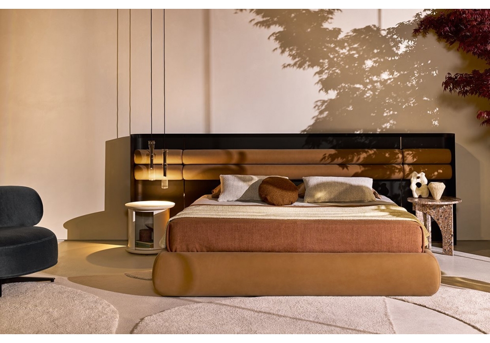 Sunrise conçu par Studiopepe pour Gallotti&Radice est un lit en polyuréthane expansé indéformable en densité variables et fibre de polyester. Tête de lit autoportante en frêne courbé teinté noir pore ouvert avec appui-tête en polyuréthane expansé indéformable. Disponible aussi version en bois laqué mat dans les coloris “Rosso Persia”, “Grigio Londra”, “Nero Giza”, “Bianco Camargue”, “Verde Provenza”, “Blu Pacifico”, “Bordeaux Etruria”, “Rosa Jaipur” et “Sabbia del Nilo”. Disponible avec revêtement en tissu ou cuir dans les coloris de nos échantillons. Détails en métal nickelé noir. Lattes en bois inclusif. Cadre de lit déhoussable. Appui- tête déhoussable sauf Cat. L1, L2.