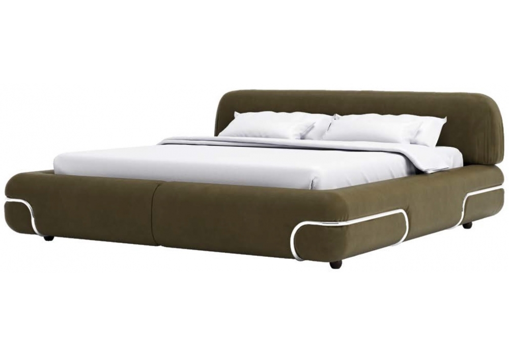 So Soft conçu par Studiopepe pour Baxter est un lit avec cadre de lit et tête de lit en bois de sapin nid d'abeille et peuplier. Sommier divisible en deux parties. Rembourrage en mousse de polyuréthane à densité différenciée avec revêtement en fibre acrylique. Pieds en hêtre teinté noyer. Tubulaires décoratifs en métal avec finition au choix. Disponible en différentes dimensions. Revêtement en cuirs souples uniquement.