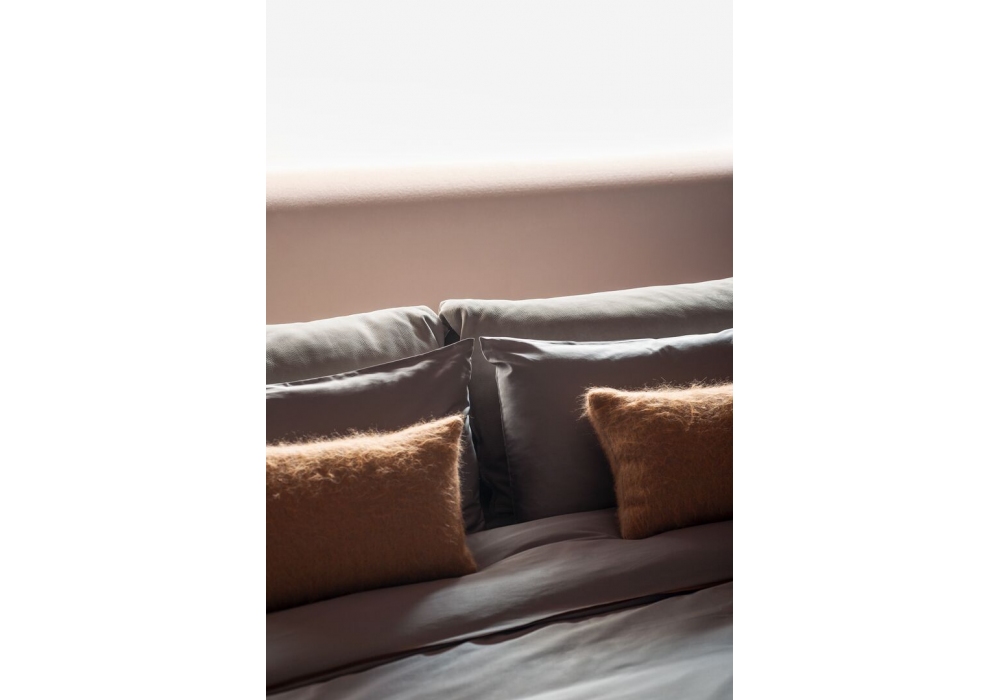 Casablanca conçu par Paola Navone pour Baxter est un lit avec structure sommier en sapin en nid d'abeille avec quatre bandes latérales démontables. Rembourrage en mousse de polyuréthane à densité différenciée avec revêtement en fibre acrylique. Tête de lit en duvet d'oie lavé et stérilisé. Pieds en hêtre teinté noyer. Dos de la tête de lit recouvert de cuir. Revêtement en cuir avec coutures aux bords vifs. Revêtement du cadre de lit en cuir déhoussable. Disponible en différentes dimensions. Revêtement en cuirs souples uniquement.