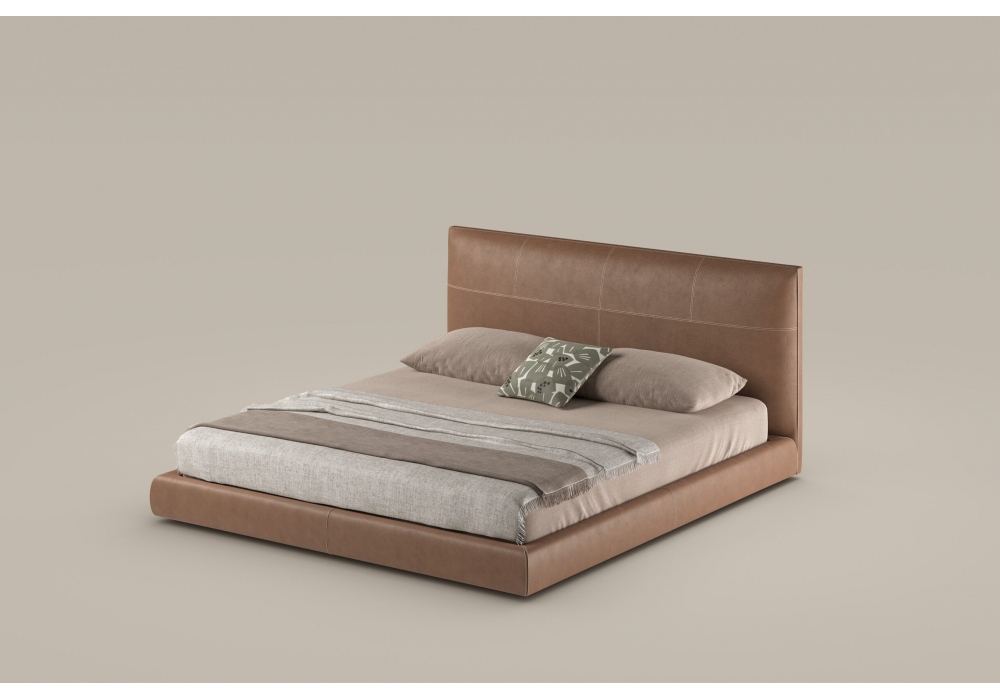 Oris conçu par Gabriele et Oscar Buratti pour Bonaldo est un lit avec des pieds en métal noir et un revêtement en tissu ou en cuir.