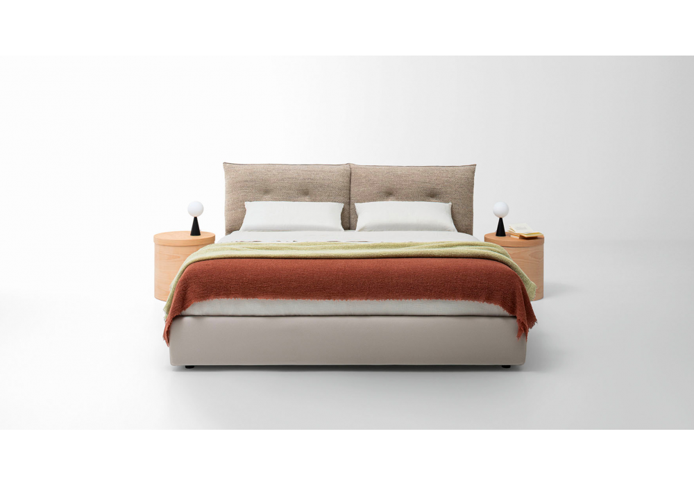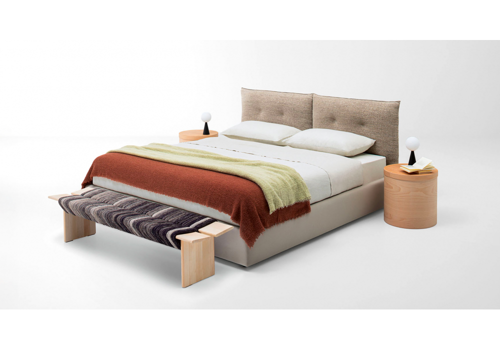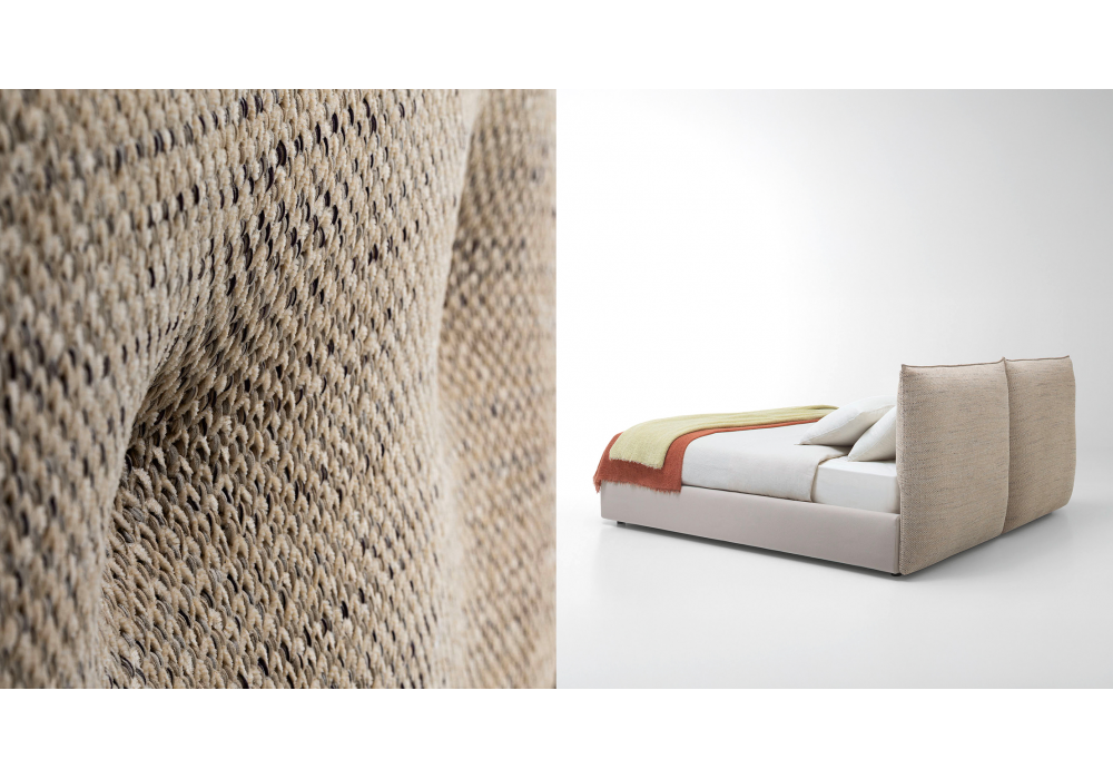 Silent Reps conçu par Francesco Rota pour Paola Lenti est un lit avec revêtement amovible et tête de lit réalisée avec des ceintures élastiques recouvertes de tricot Chain et rembourrées en polyester placées côte à côte. Disponible en différentes tailles. Sommier à lattes inclus.