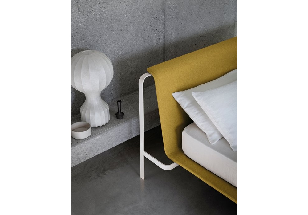 Bend conçu par Zanellato/Bortotto pour Bolzan est un lit en fer - disponible dans les finitions suivantes: laqué mat RAL 5008 bleu gris, 8019 brun gris, 3005 rouge vin, 7044 gris soie, 6020 vert chrome, 9011 noir graphite, 9010 blanc pur, 1013 blanc perle. Entièrement déhoussable.