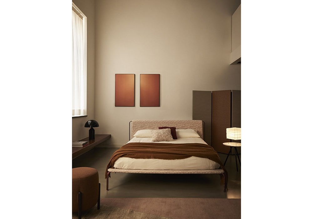 Bend-e conçu par Zanellato/Bortotto pour Bolzan est un lit en fer - disponible en différentes finitions. Entièrement déhoussable, il est le fruit d'un savoir-faire artisanal qui transpose le savoir-faire ancestral du fer forgé dans l'univers du design et le sublime grâce aux tissus d'une manufacture à l'histoire séculaire. Bend-e par Zanellato/Bortotto est la réédition de Bend, un classique du catalogue Bolzan aux formes contemporaines. Tête et pied de lit forment un seul corps, tapissé et revêtu de tissu, qui longe la structure et repose sur des pieds en fer forgé.
