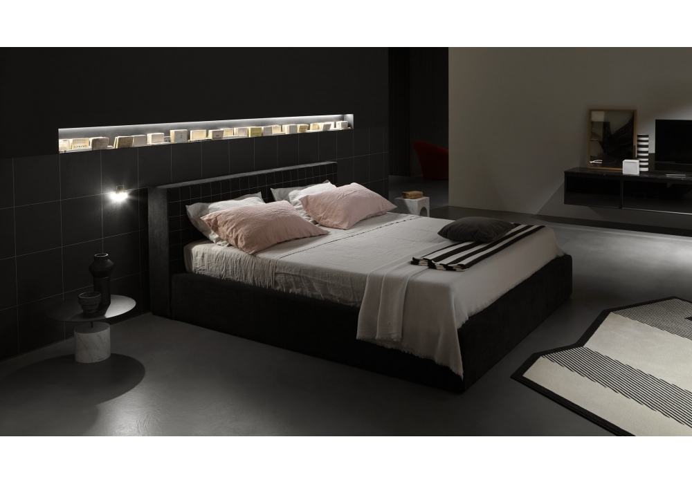 TLR conçu par Gumdesign pour Antonio Lupi est un lit réalisé avec une base en contreplaqué CARB de différentes épaisseurs et une tête de lit en contreplaqué CARB de différentes épaisseurs et des règles en sapin. Le rembourrage est en polyuréthane moulé de différentes densités, recouvert de fibre de polyester. Le revêtement est en tissu ou en cuir et les pieds sont en plastique.