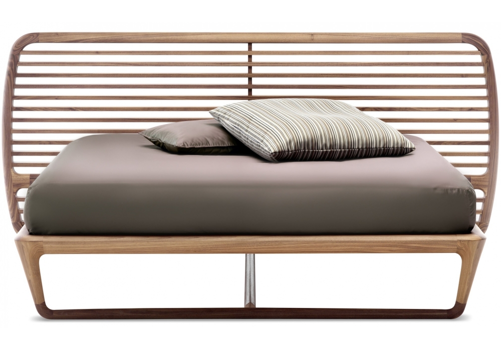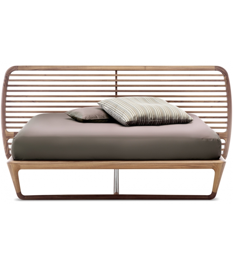 Buonanotte Valentina by Ceccotti Collezioni is a bed made in solid American walnut, headboard made with curved wooden slats. Available with high or low headboard (mattress 180 x 200 excluded).