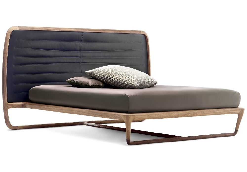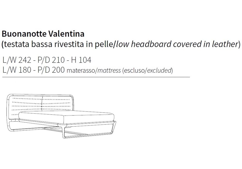 Buonanotte Valentina by Ceccotti Collezioni is a bed made in solid American walnut, low headboard upholstered in leather. Bed base in veneered plywood. Mattress 180 x 200 excluded.