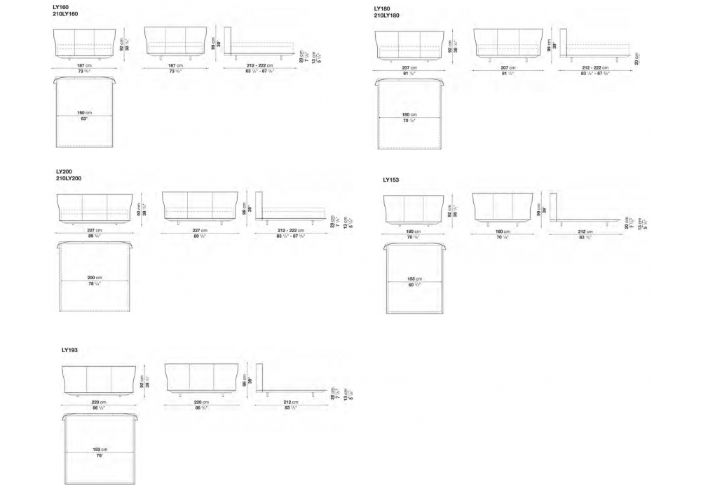 Alys, conçu par Gabriele et Oscar Buratt pour B&B Italia, est un lit avec structure interne en tube d'acier et profilés en acier, avec rembourrage en mousse de polyuréthane Bayfit® et revêtement en cuir dans différentes finitions. Sommier à lattes en tube d'acier et lattes en contreplaqué, pieds en matériau thermoplastique.