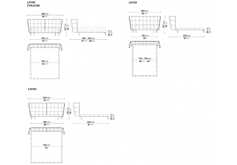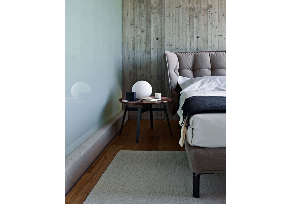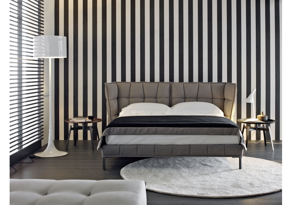 Husk conçu par Patricia Urquiola pour B&B Italia est un lit avec structure interne en tubes d'acier et profilés en acier et rembourrage en mousse de polyuréthane Bayfit®. Revêtement en différents tissus ou cuirs. Pieds en aluminium moulé sous pression et tôle d'acier avec embouts en matériau thermoplastique.