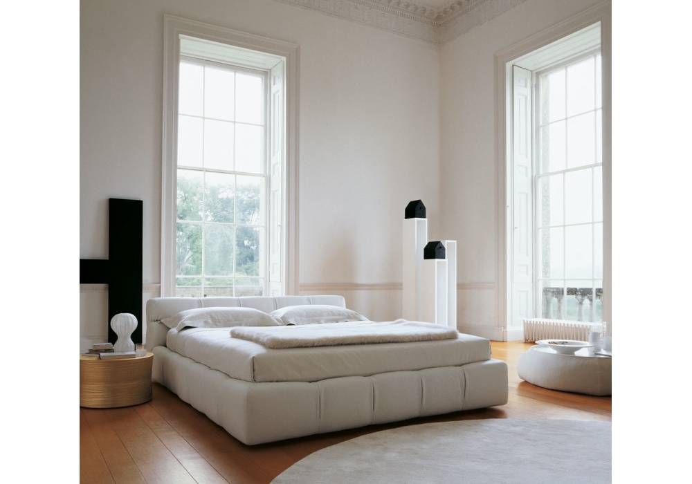 Tufty-Bed conçu par Patricia Urquiola pour B&B Italia est un lit avec structure interne en tube d'acier et profilés en acier avec rembourrage en mousse de polyuréthane Bayfit® et revêtement en différents tissus ou cuirs. Pieds en chêne massif. Disponible également sur demande dans la version avec coffre.