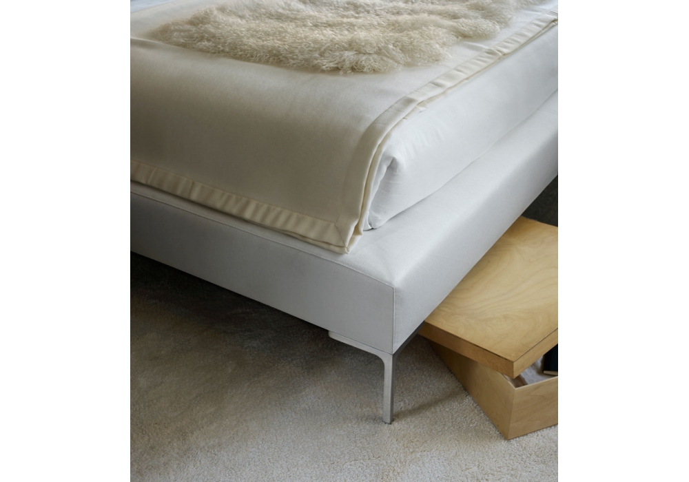 Charles conçu par Antonio Citterio pour B&B Italia est un lit avec une structure interne en tube d'acier et des profils avec rembourrage en mousse de polyuréthane Bayfit® et revêtement en différents tissus ou cuirs.