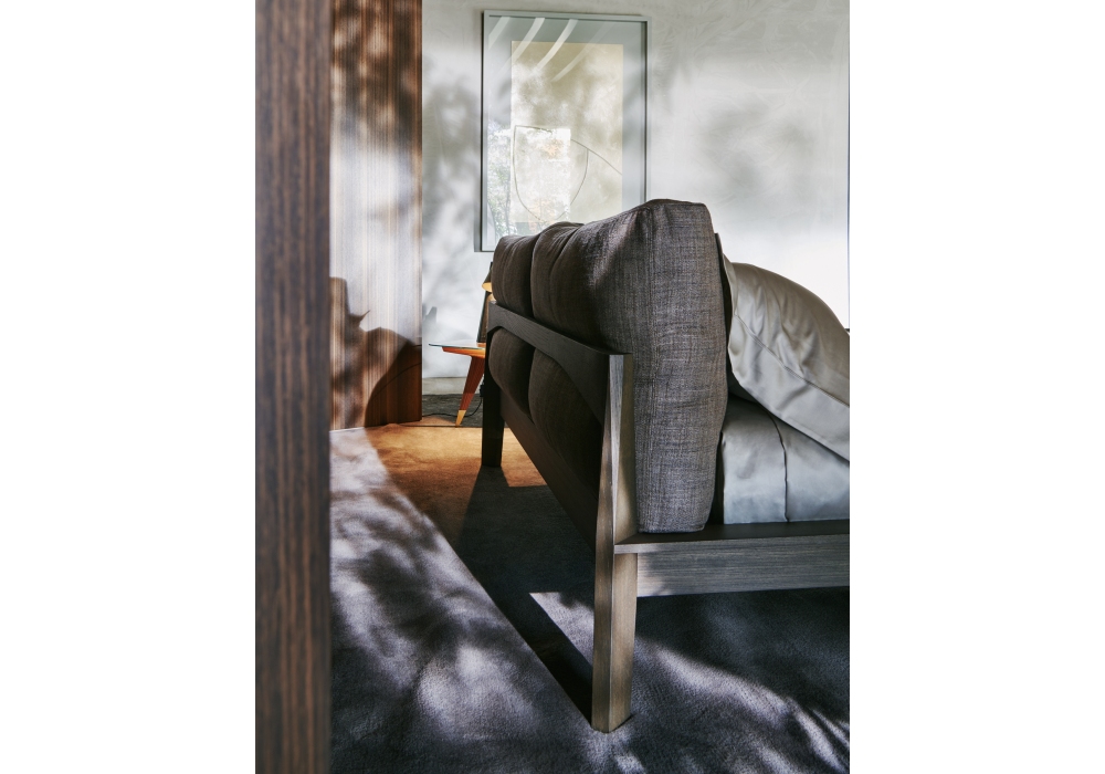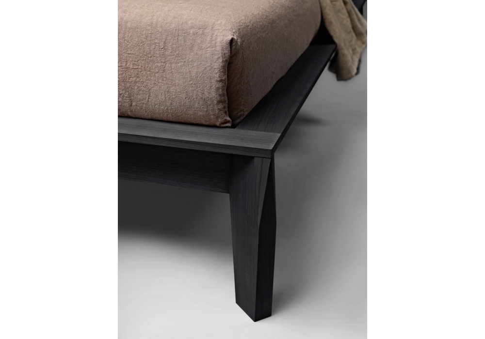 Wish conçu par Rodolfo Dordoni pour Molteni&C est un lit avec structure en bois de chêne massif (Quercus) avec coussinets en feutre pour le support au sol. Pour la version eucalyptus il est teinté noyer Canaletto (Juglans nigra). Coussins de tête de lit avec insert en mousse de polyuréthane et plumes stérilisées. Doublure 100% coton. Repose sur des panneaux d'aggloméré recouverts de bois tranché.