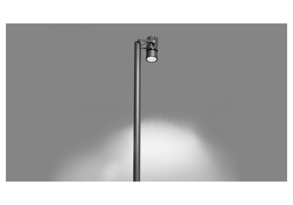 Cariddi Palo conçu par Ernesto Gismondi pour Artemide est un lampadaire d'extérieur avec structure tubulaire en aluminium peint en gris anthracite. Le diffuseur est en méthacrylate et abrite une source lumineuse de type LED protégée par un couvercle en verre trempé.