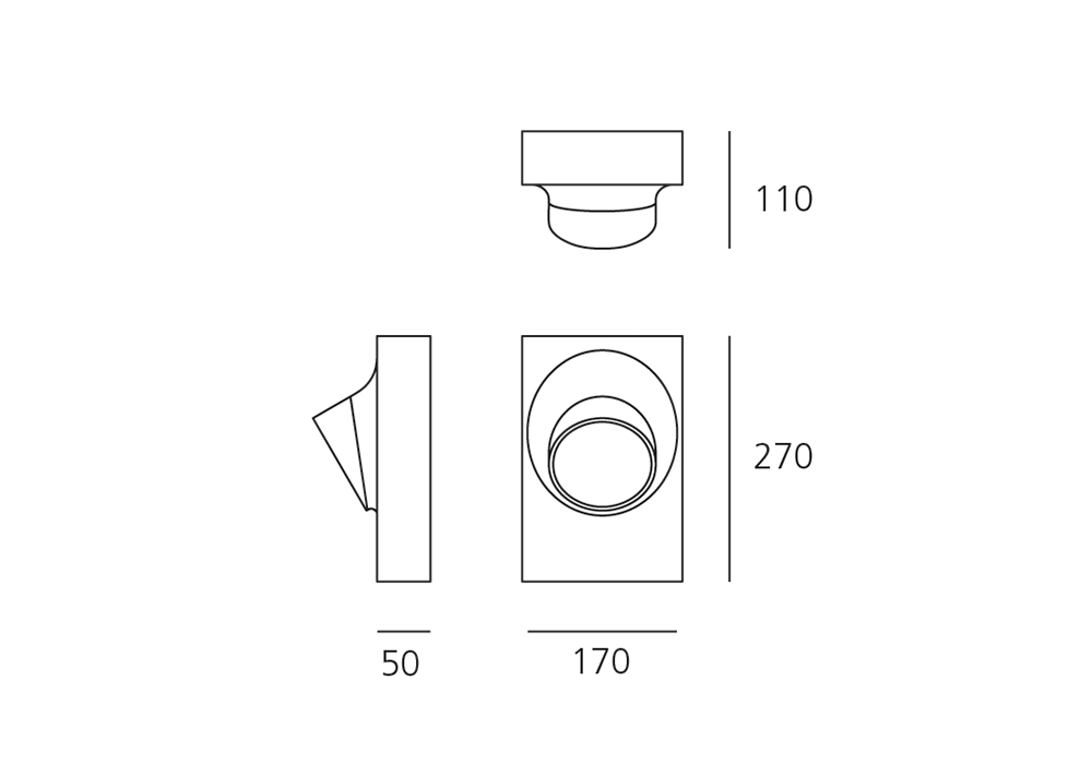Ciclope conçue par Alessandro Pedretti pour Artemide est une applique d'extérieur de forme quadrangulaire structurée par la combinaison d'acier et d'aluminium peint en différentes finitions. Le diffuseur est circulaire en technopolymère composite et abrite une source lumineuse à LED.