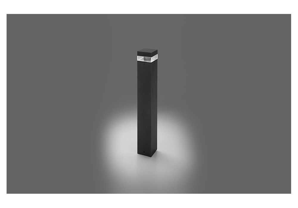 Tetragono conçu par Ernesto Gismondi pour Artemide est un lampadaire d'extérieur avec structure quadrangulaire en aluminium peint avec un traitement extérieur en 3 étapes : nanotechnologies, apprêt antioxydant, peinture polyester. Le diffuseur est en polycarbonate et protège une source de lumière LED intégrée. La base est dotée d'une bride en fer électrozingué avec des trous pour la fixation au sol à l'aide de boulons d'ancrage ou de chevilles.