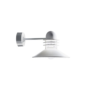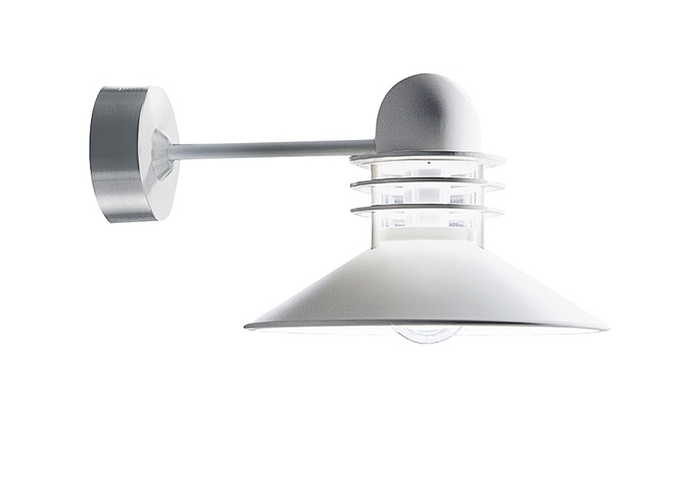 Nyhavn conçue par Alfred Homann & Ole V. Kjær pour Louis Poulsen est une applique d'extérieur entièrement structurée en aluminium ou en cuivre étiré. La source lumineuse adoptée est avec une douille E27 de type LED ou halogène.