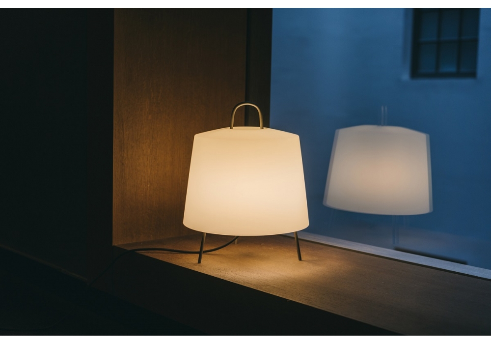 Mia conçue par Michel Charlot pour Kettal est une lampe de table avec structure en aluminium peint couleur manganèse. Mia est disponible en différentes versions et tailles.