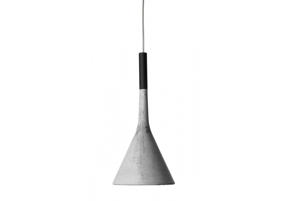 Aplomb Outdoor conçue par Lucidi et Pevere pour Foscarini est une suspension d'extérieur dotée d'un support en aluminium et d'un corps en béton coulé à la main, disponible en différentes finitions. Elle est équipée d'une source lumineuse LED.