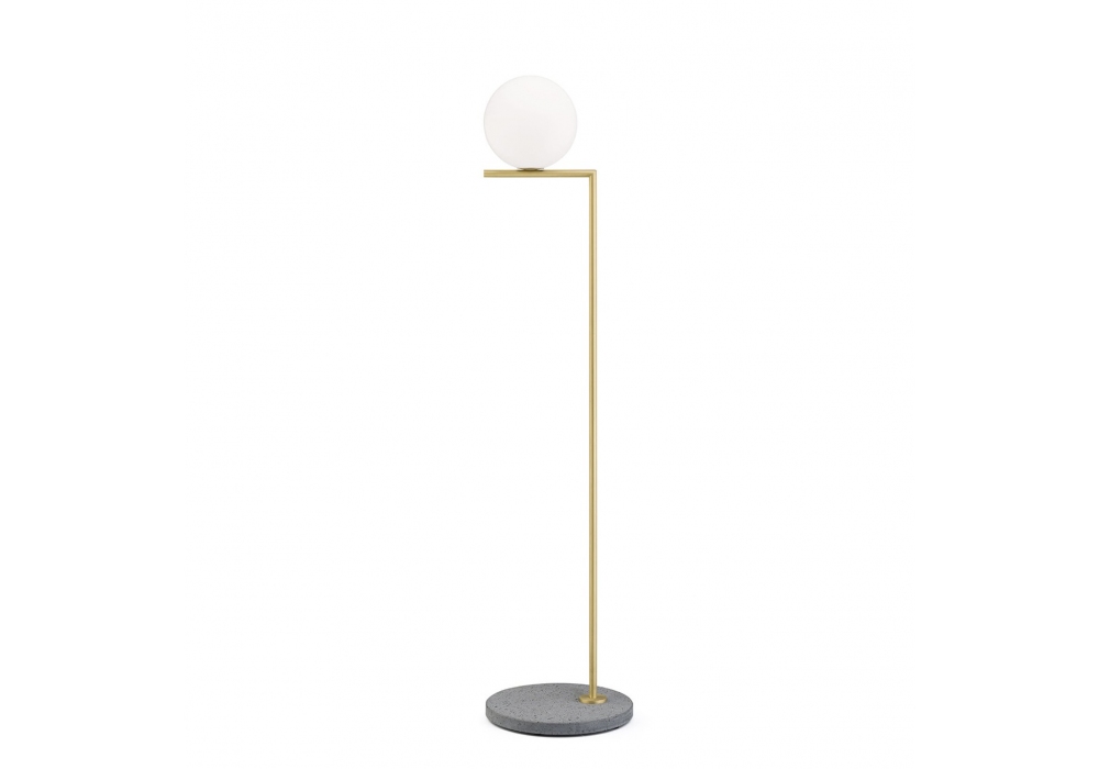 IC F1 conçu par Michael Anastassiades pour Flos est un lampadaire d'extérieur doté d'une base circulaire en marbre ou en pierre et d'une tige verticale en acier inoxydable. Source lumineuse non incluse. Un variateur à pied rétroéclairé IP65, situé sur le câble, assure la fonction marche/arrêt et la régulation du flux lumineux de 30 à 100 % (avec ampoule LED à intensité variable).