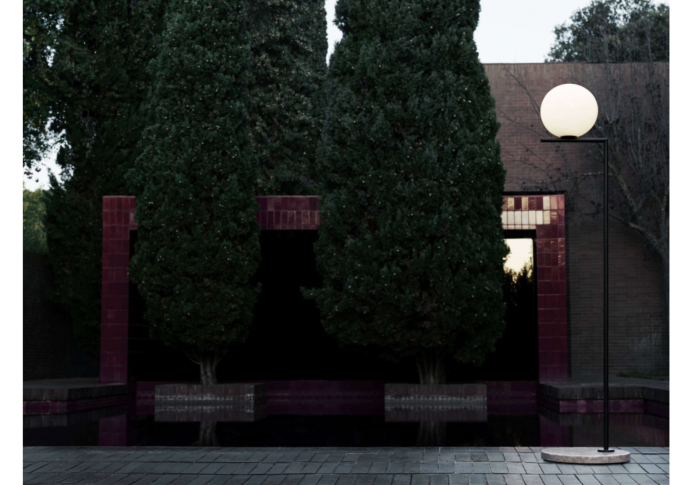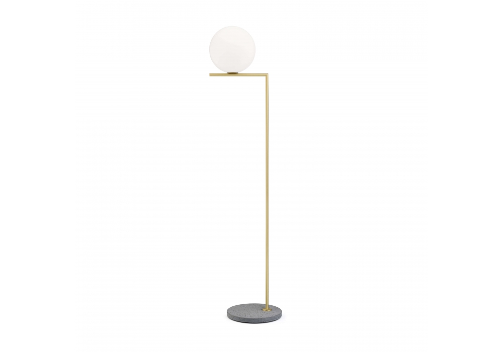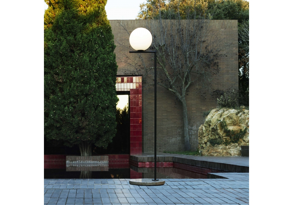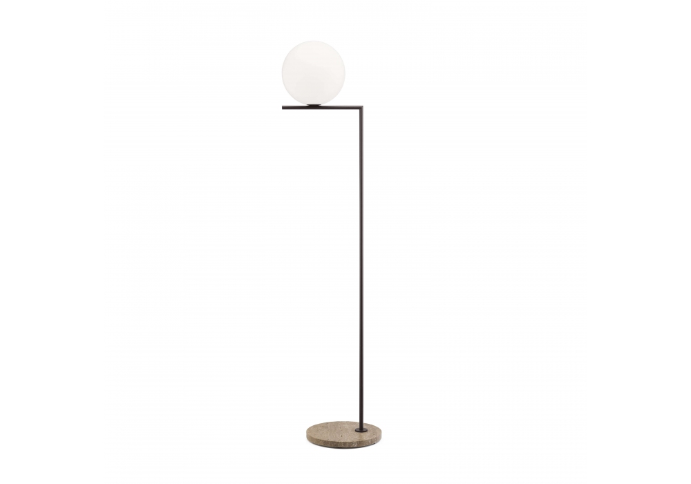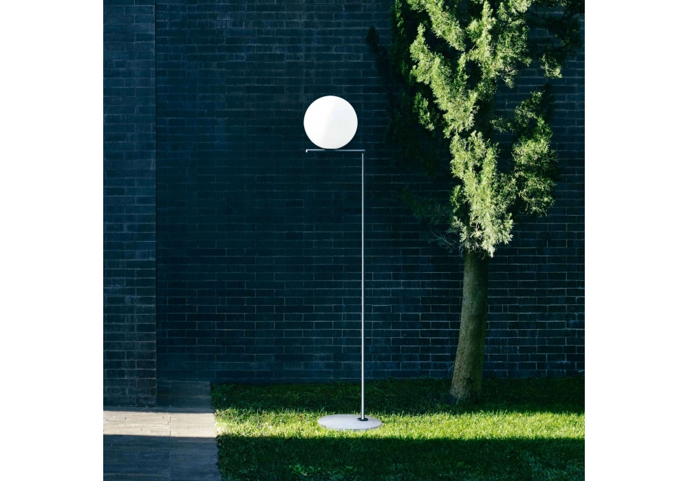 IC F2 conçu par Michael Anastassiades pour Flos est un lampadaire d'extérieur doté d'une base circulaire en marbre ou en pierre et d'une tige verticale en acier inoxydable. Source lumineuse non incluse. Un variateur à pied rétroéclairé IP65, situé le long du câble, assure la fonction marche/arrêt et la régulation du flux lumineux de 30 à 100 % (avec ampoule LED à intensité variable).