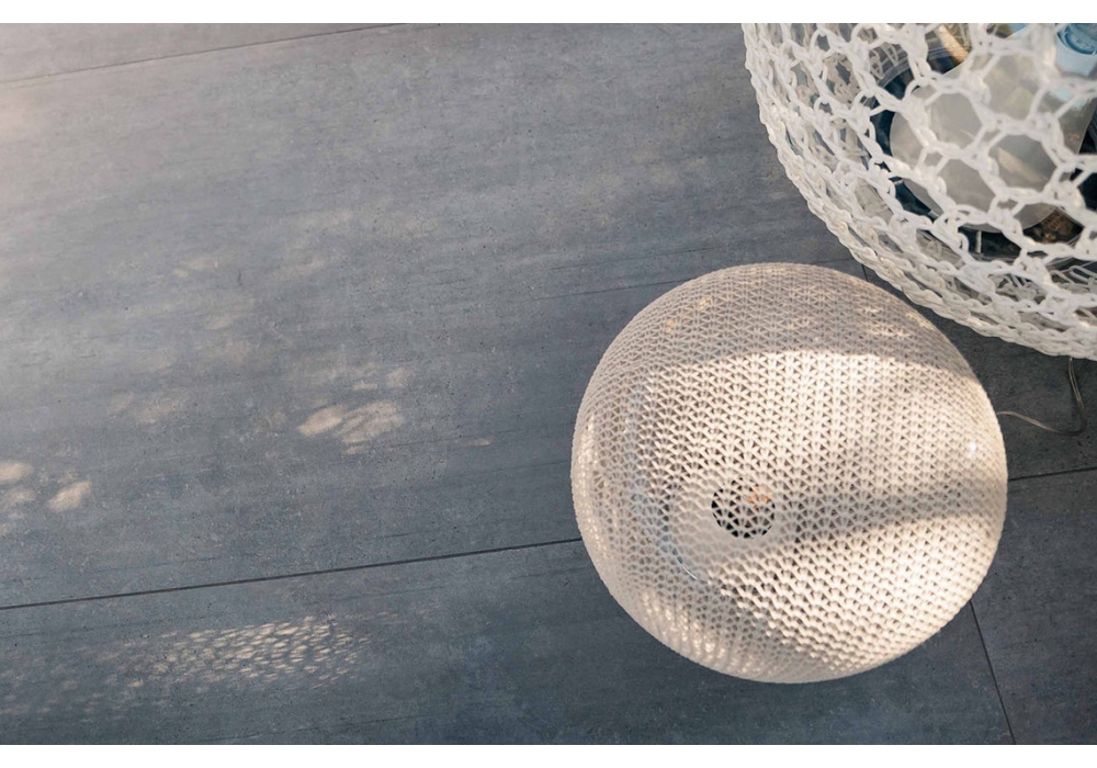 Madame Latoque conçue par Ilia Eckardt pour Tribù est une lampe de sol d'extérieur avec revêtement amovible en polypropylène, disponible en différentes couleurs et dimensions. Batterie rechargeable et lampe LED. Disponible aussi une lampe de suspension dans la même collection.