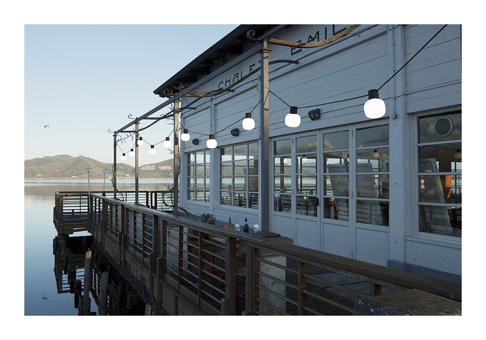 Kiki conçue par Paola Navone pour Martinelli Luce est une lampe à suspension d'extérieur. Les lampes sont de forme circulaire avec une structure en résine et caoutchouc noir soutenue par un câble en acier inoxydable. Le diffuseur est en polyéthylène et abrite une source de lumière LED avec prise E27. Kiki est disponible en différentes versions.