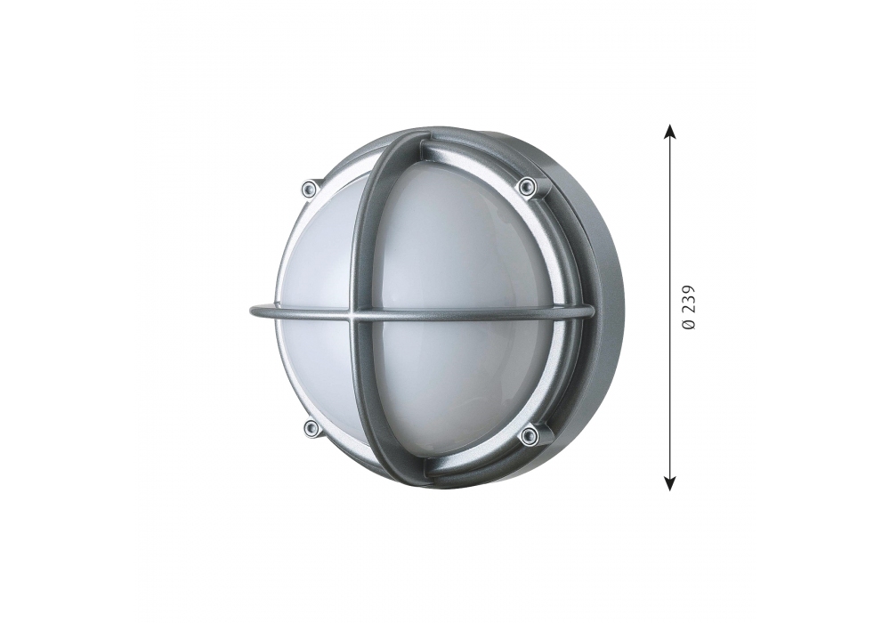 Skot conçue par LK pour Louis Poulsen est une applique/plafonnier d'extérieur circulaire avec structure portante et grille de protection en aluminium moulé sous pression enduit de poudre. Le diffuseur est en polycarbonate transparent ou opale et protège une source lumineuse de type LED dans différentes gradations de lumière. Skot est disponible en différentes finitions.