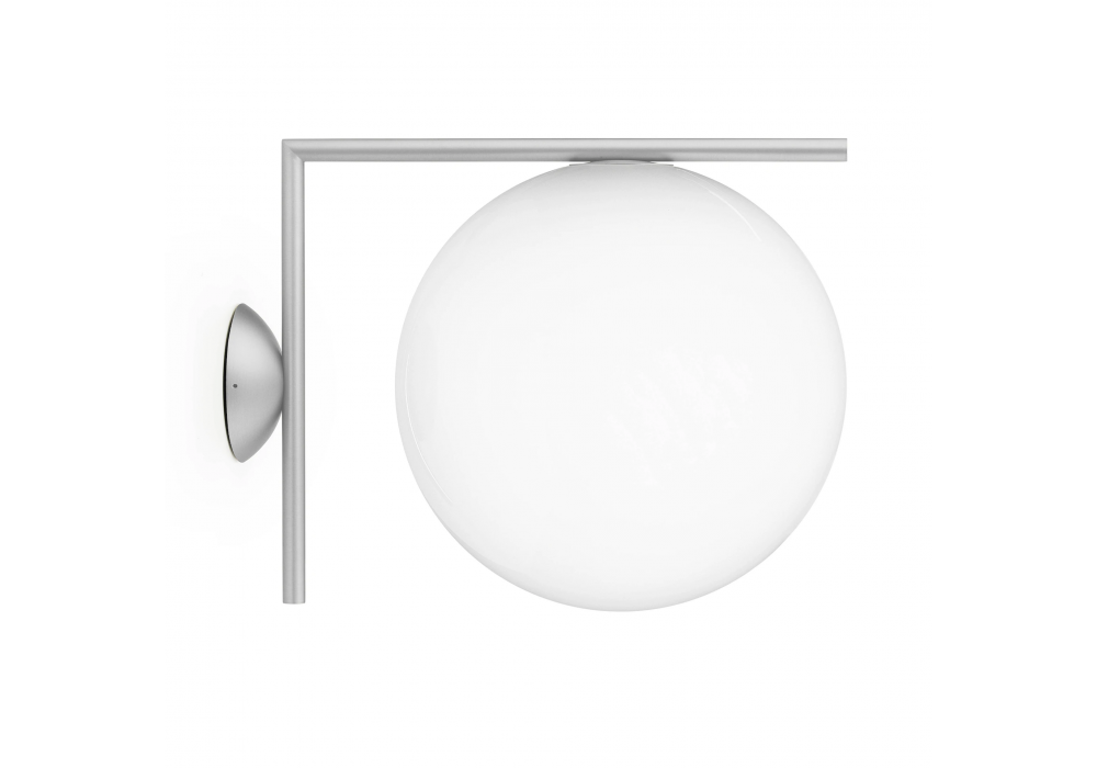 IC C/W2 conçue par Michael Anastassiades pour Flos est une applique/plafonnier à lumière diffuse. Structure en laiton, acier brossé et peint transparent ou chromé. Diffuseur opale en verre soufflé. Ampoule non incluse.