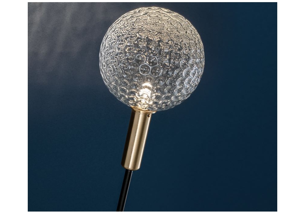 Syphasfera conçu par Enzo Catellani pour Catellani & Smith est un lampadaire LED avec tige en laiton peint en noir et détails en laiton. Le diffuseur est de forme sphérique, disponible en verre transparent ou irrégulier. La lampe est conçue pour les espaces extérieurs, c'est pourquoi il est possible d'ajouter des accessoires pour le système de boîte à gel et des connecteurs rapides.