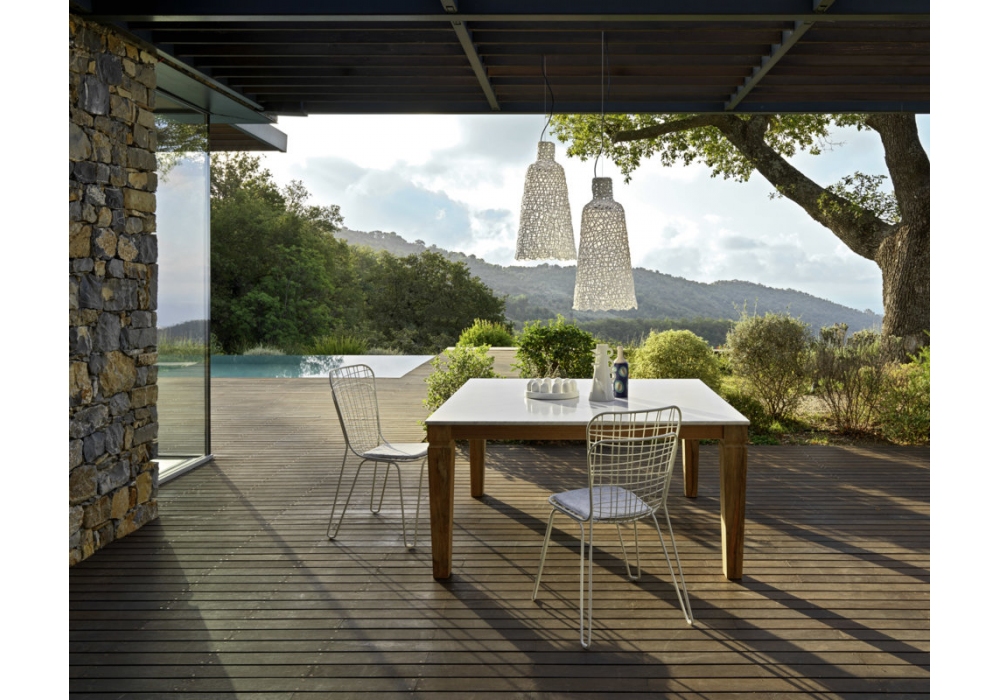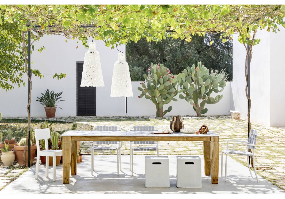 Random conçue par Paola Navone pour Gervasoni est une suspension en polyéthylène blanc tissé à la main.