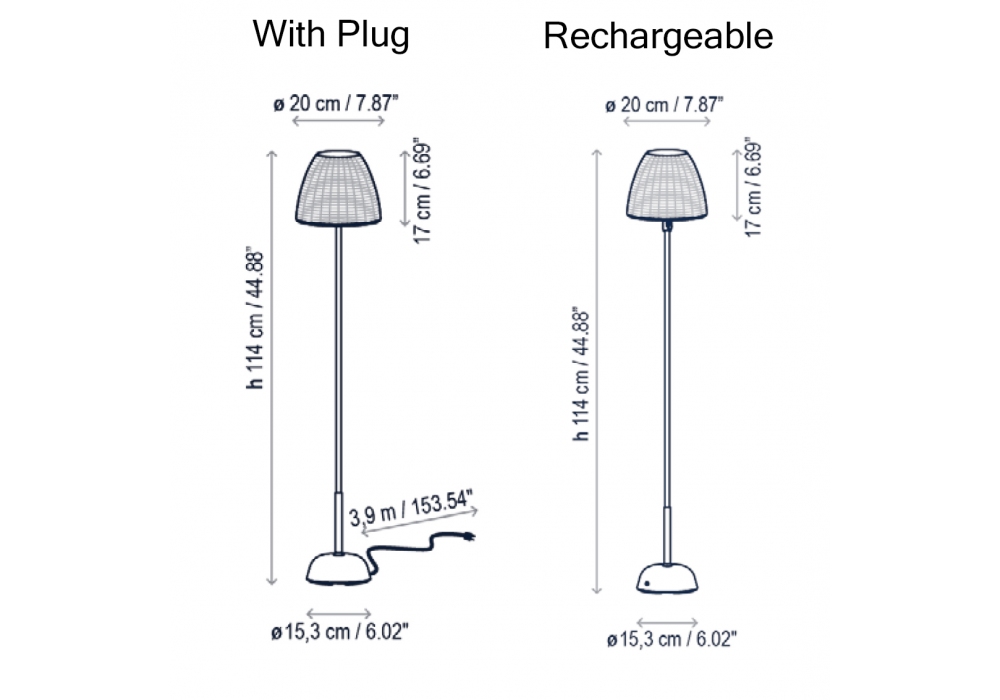Atticus Bover conçu par Joana Bover pour Bover est un lampadaire d'extérieur avec base circulaire en aluminium et tige verticale en acier inoxydable peint. L'abat-jour est structuré avec un tissage de fibres synthétiques avec un diffuseur en polyéthylène et abrite une source lumineuse de type LED avec interrupteur marche/arrêt. Atticus est disponible en différentes finitions et versions.