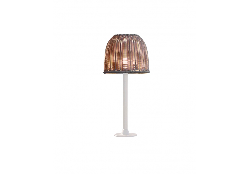 Atticus conçue par Joana Bover pour Bover est une lampe de table d'extérieur avec base circulaire et tige verticale en acier inoxydable peint. L'abat-jour est structuré avec un tissage de fibres synthétiques avec un diffuseur en polyéthylène et protège une source lumineuse LED dimmable Triac. Atticus est disponible en différentes finitions.