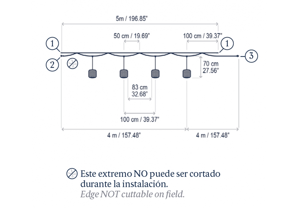 Nans Catenary conçue par Joana Bover pour Bover est une lampe à suspension d'extérieur avec structure portante en acier inoxydable et aluminium peint en marron graphite. Les abat-jour ont une forme arrondie en fibre synthétique avec des diffuseurs en polycarbonate et des sources lumineuses de type écran LED avec un système de variateur Triac. Nans Caténaire est disponible en différentes finitions.