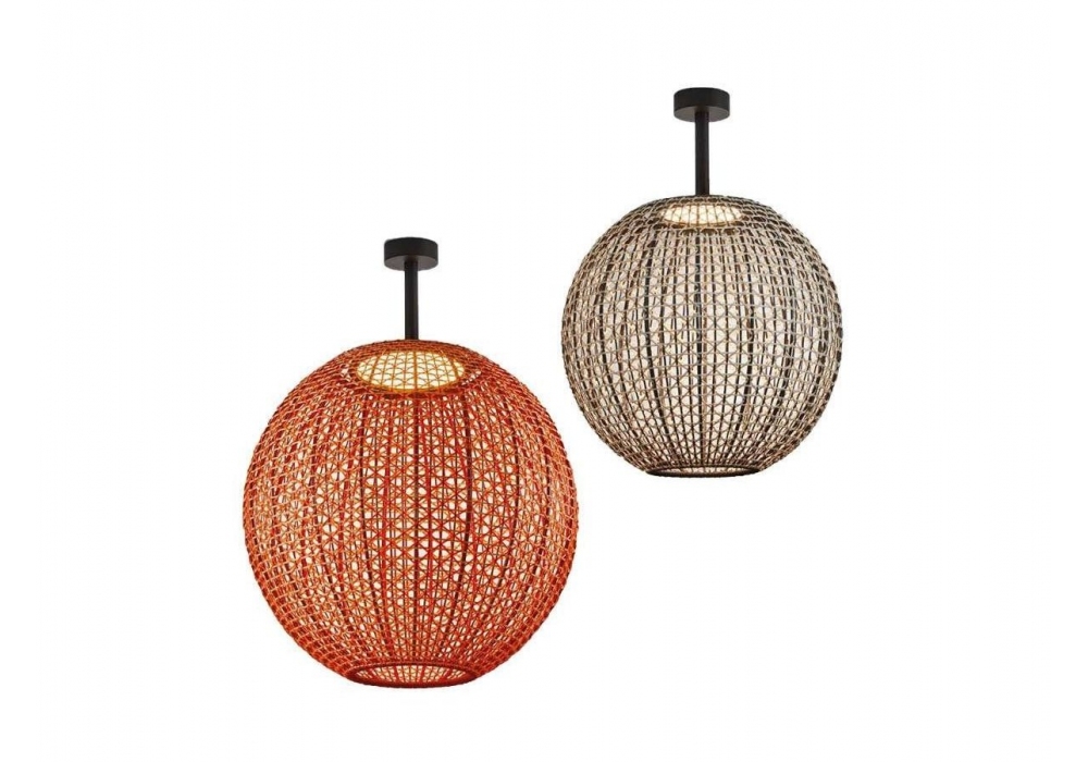 Nans Sphere conçue par Joana Bover pour Bover est une plafonnier d'extérieur avec structure portante en acier inoxydable et aluminium peint en marron graphite. L'abat-jour a une forme sphérique en fibre synthétique avec un diffuseur en polycarbonate et protège une source de lumière LED avec un système de variateur Triac. Nans Sphere est disponible en différentes finitions et modèles.