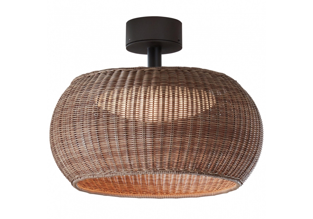 Perris conçue par Joana Bover pour Bover est un plafonnier d'extérieur avec structure portante en acier inoxydable et aluminium peint en marron. L'abat-jour est de forme circulaire en fibre synthétique avec diffuseur en polycarbonate et abrite une source de lumière LED avec système de variateur Triac. Perris Sphere est disponible en différentes finitions d'abat-jour.
