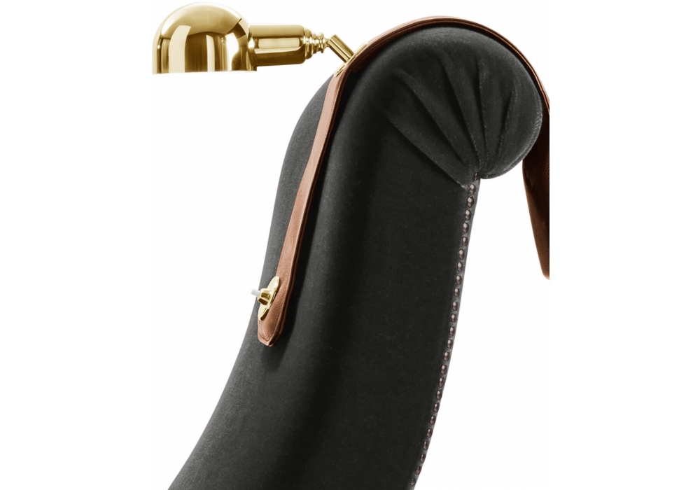 Lampada Poltrona conçue par Luigi Caccia Dominioni pour Azucena est une lampe pour fauteuil/tête de lit avec diffuseur disponible en deux finitions (laiton ou chrome), et bande recouverte de cuir Koto ou Kasia.