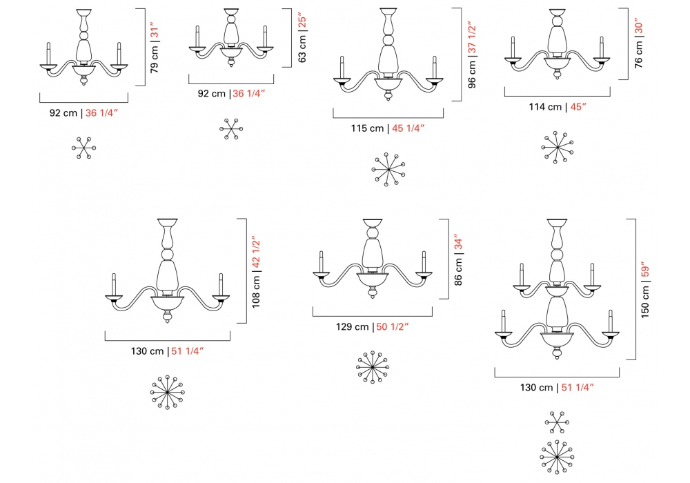 Palladiano produit et conçu par Barovier & Toso est un lustre avec structure portante et détails en métal recouvert de verre vénitien. Les sources lumineuses retenues sont de type LED dimmable ou halogène. Palladiano est disponible en différents modèles et finitions.
