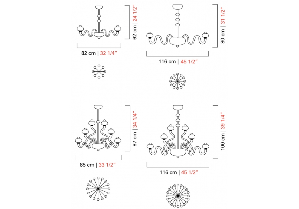 | Dimensions | Ø 82 x H 62 cm; Ø 116 x H 80 cm; Ø 85 x H 87 cm; Ø 116 x H 100 cm. |