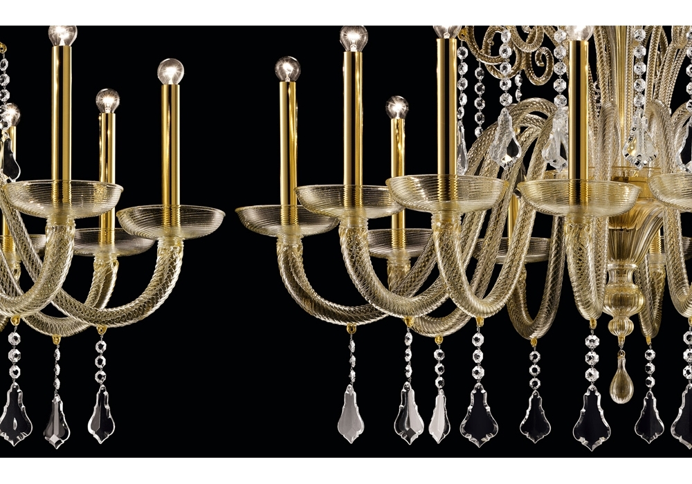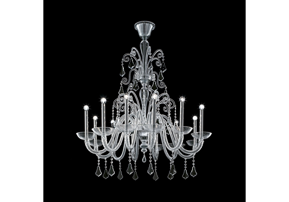 Izmir conçu et produit par Barovier & Toso est un lustre structuré à 1 ou plusieurs niveaux superposés avec structure en métal et bras recouverts de verre vénitien et de cristal. Les sources lumineuses retenues sont de type LED dimmable ou halogène. Izmir est disponible en différents modèles et finitions.