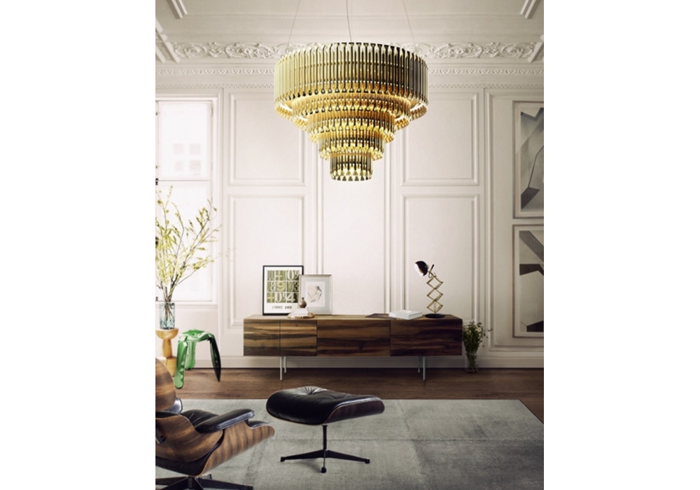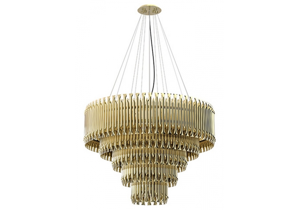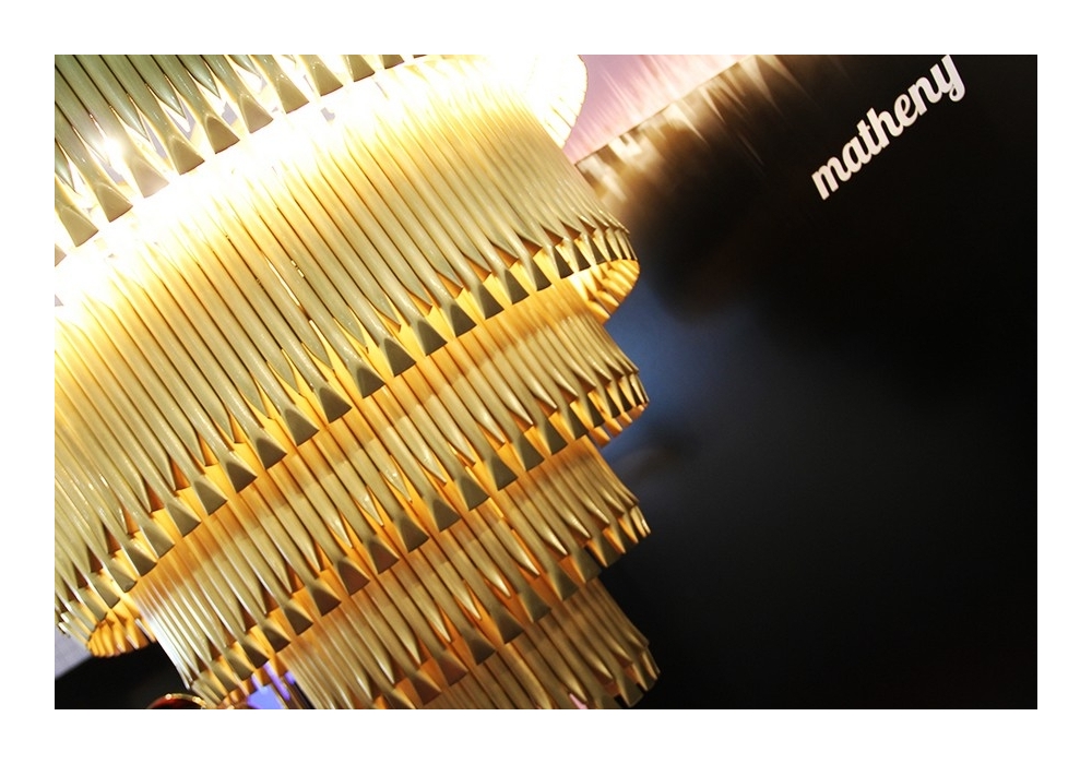 Matheny 5 conçue par DelightFULL est une lampe à suspension au design géométrique de tubes combinés et sa structure est faite à la main en laiton.