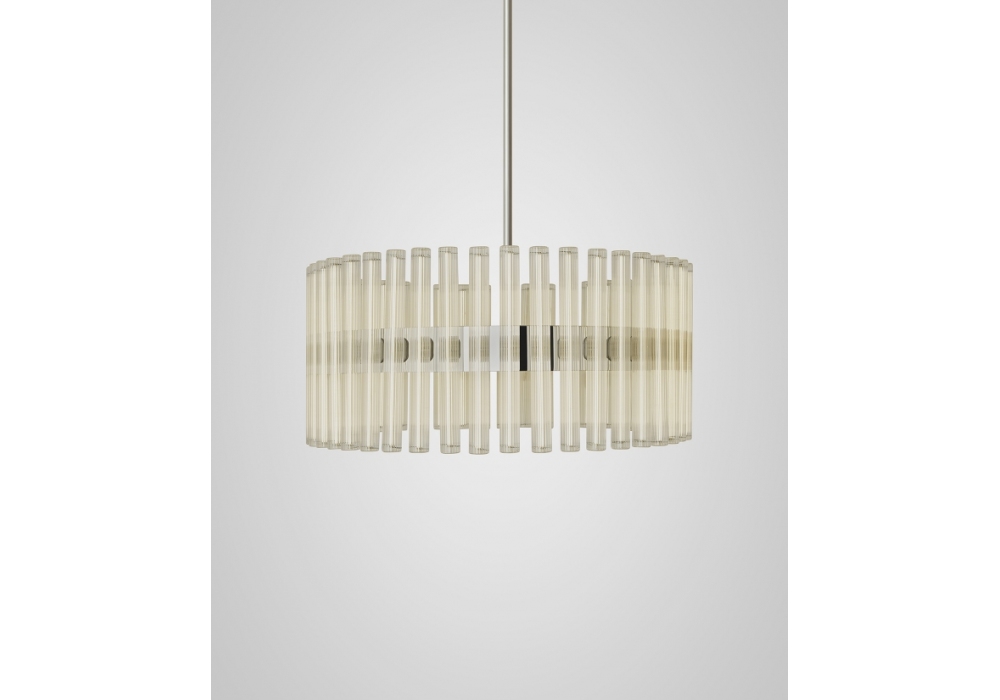 Aurora Ring produit et signé par Lee Broom est un lustre circulaire avec une structure portante en acier chromé ornée de divers éléments tubulaires en verre soufflé. La source lumineuse retenue est de type LED dimmable. La bague Aurora est disponible en différents modèles et tailles.