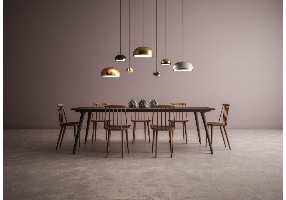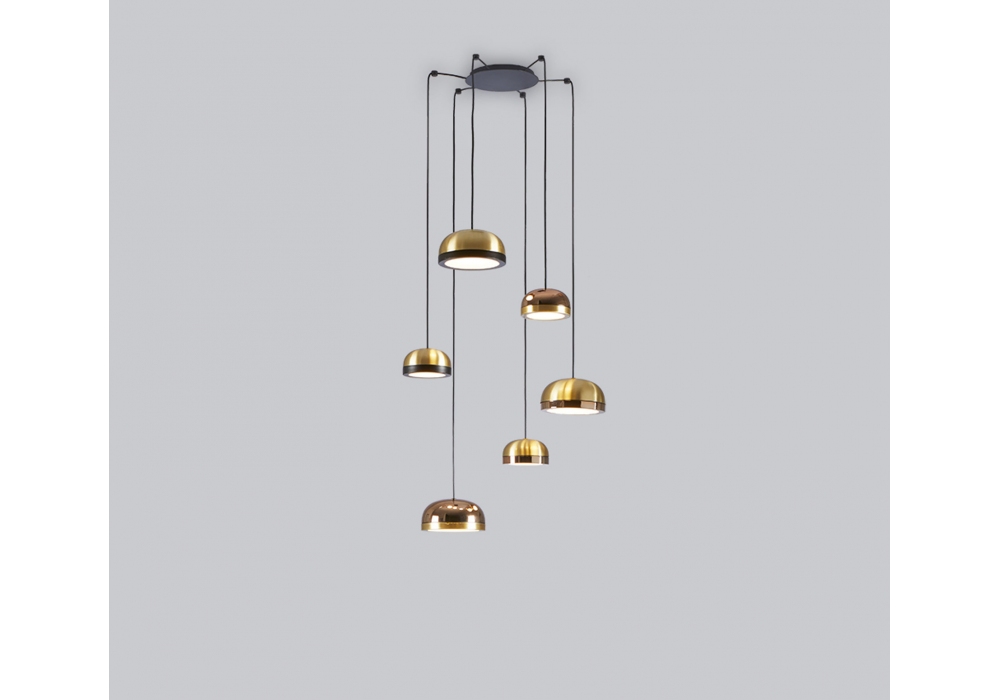 556 Molly conçu par Corrado Dotti pour Tooy est un lustre LED avec abat-jour en forme de dôme. Disponible en plusieurs finitions. En plus des combinaisons de couleurs sélectionnables, une personnalisation est possible. LED incluse.