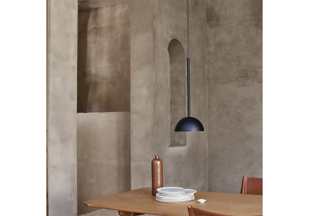 MO330 conçu par Mads Odgård pour Carl Hansen & Søn est un lustre avec abat-jour et base en acier peint disponibles en différentes couleurs. Douille avec culot E12 ou E14, selon le pays de destination. Câble en tissu noir de 2,5 m.