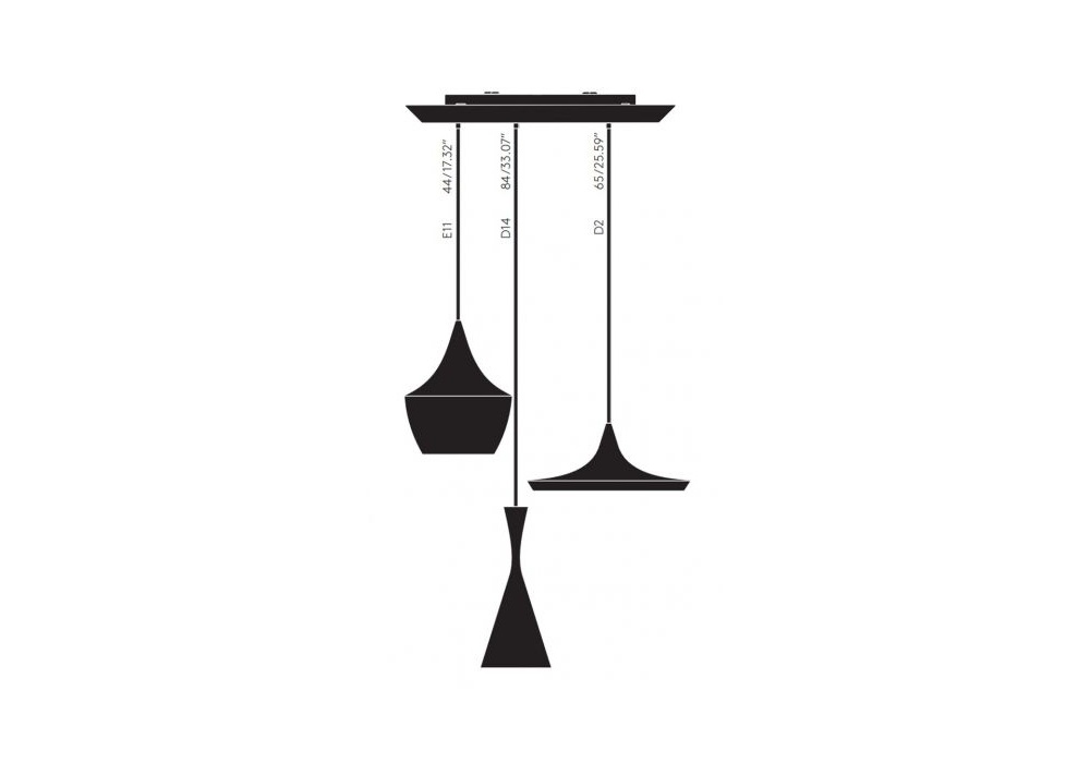 Beat Trio conçu par Tom Dixon est un lustre en laiton composé de trois plafonniers, intérieur doré. Lustre disponible en différentes finitions.