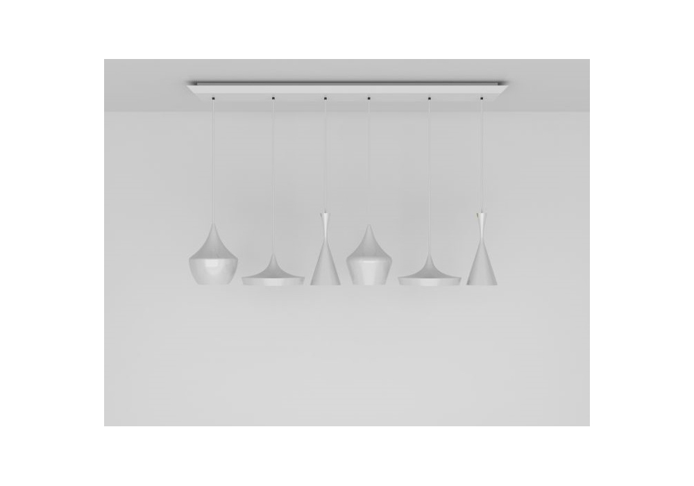 Beat Range Linear conçu par Tom Dixon est un système de suspension composé de six lampes en laiton, à l'intérieur de couleur or. Système disponible en différentes finitions.