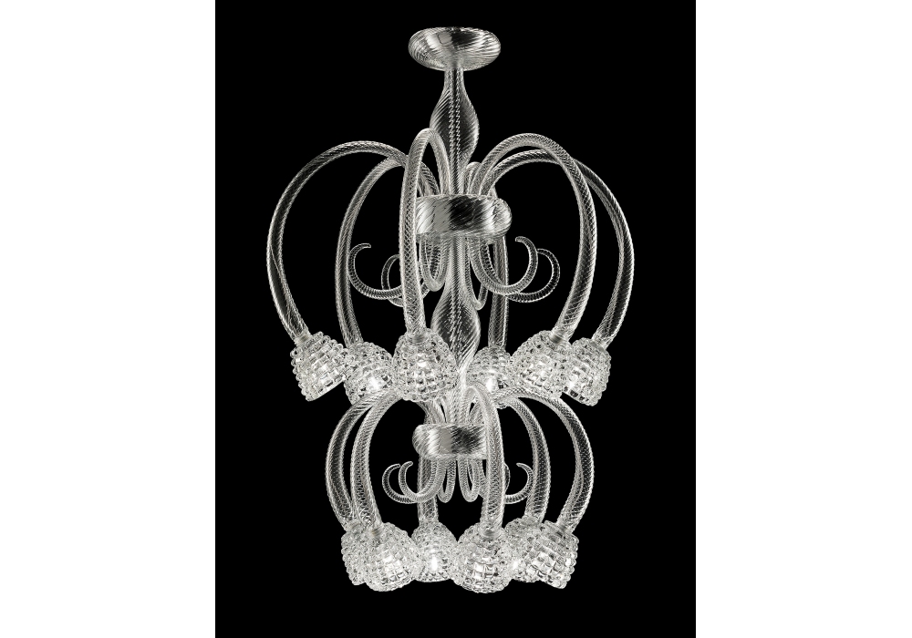 Quadri conçu et produit par Barovier & Toso est un lustre structuré à 1 ou plusieurs niveaux superposés avec une structure en métal recouverte de verre vénitien. Les bras et les diffuseurs sont ornés de petits amours qui couvrent toute la surface. Les sources lumineuses sont à LED dimmable ou halogène. Quadri est disponible en différentes finitions et modèles.