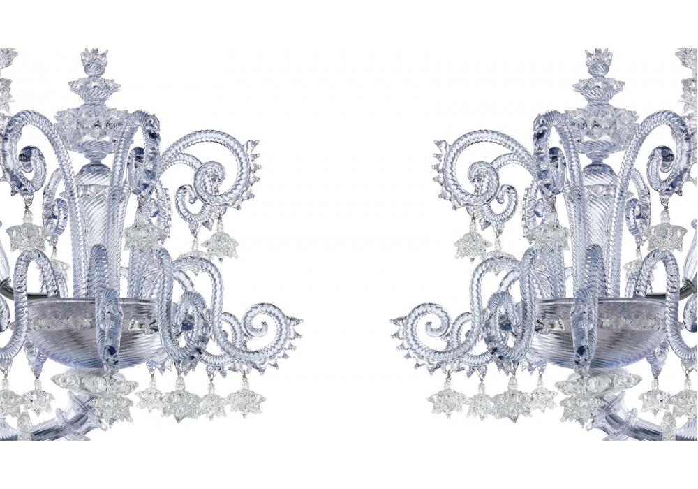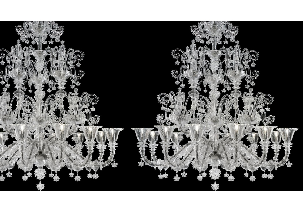 Venezia 1295 conçu et produit par Barovier & Toso est un lustre à plusieurs niveaux avec structure de support et détails en métal chromé doré ou poli galvanisé. Le corps de la lampe et les bras sont recouverts de verre vénitien couleur cristal agrémenté de décorations et de pendentifs toujours en cristal transparent. Les sources lumineuses retenues sont de type LED dimmable ou halogène. Venezia 1295 est disponible en différents modèles et finitions métalliques.